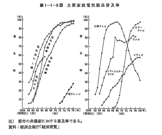 これら家電製品の普及率はすさまじかった。